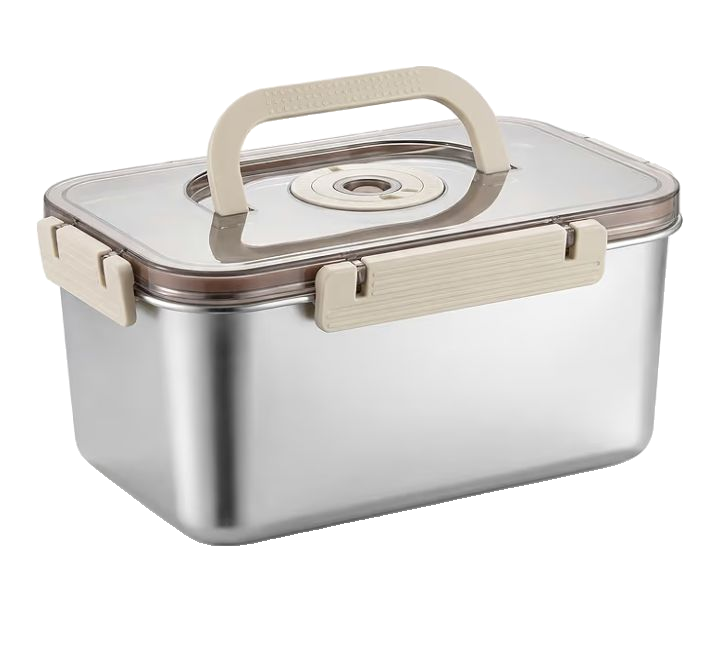 A stainless steel bread box is a stylish and practical kitchen accessory designed to keep bread fresh for longer periods. It is made from high-quality stainless steel, which ensures durability and resistance to rust and corrosion. The smooth, polished surface gives it a modern and elegant appearance that complements any kitchen dΓ©cor. This type of bread box provides a cool, dry, and dark environment that helps prevent bread from becoming stale too quickly. It typically features a secure lid, which may be hinged or removable, to allow easy access while maintaining proper airflow. The sturdy construction protects bread from external elements such as moisture, insects, and dust. Many stainless steel bread boxes are spacious enough to store multiple loaves, buns, or pastries at once. They are also easy to clean, requiring only a simple wipe with a damp cloth to maintain their shine. The non-porous surface prevents the absorption of odors and flavors, ensuring that bread tastes fresh every time. Some models include ventilation holes to balance humidity levels inside the box. Its compact design helps save counter space while keeping the kitchen organized. The sleek metallic finish adds a touch of sophistication to the overall kitchen setting. Stainless steel bread boxes are also eco-friendly as they reduce the need for plastic storage bags. They are lightweight yet strong, making them convenient for daily use. Many designs come with ergonomic handles for easy opening and closing. The box is suitable for storing various types of bread, including homemade and store-bought varieties. It helps extend the shelf life of baked goods without the need for refrigeration. The timeless design ensures it remains a functional and decorative item for years. Overall,a stainless steel bread box is an essential kitchen tool that combines functionality, hygiene, and aesthetic appeal.